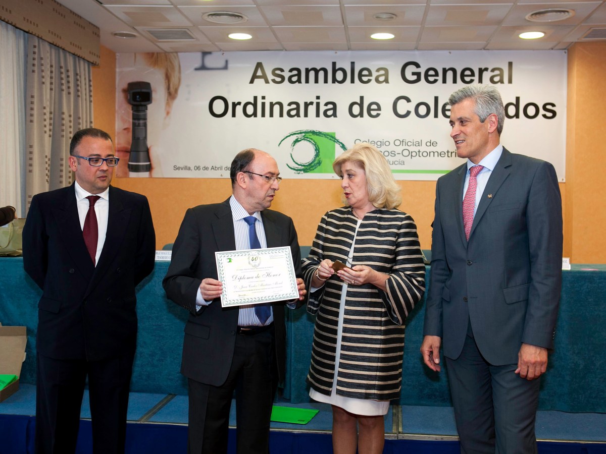 Publicado 27 junio, 2013 en 2362 × 1772 en Homenaje a los veteranos de la profesión ← Anterior Siguiente → Jorgue Maguilla (izq.) y Antonio Cantero (der.), tesorero y secretario del Colegio Oficial de Ópticos-Optometristas de Andalucía, respectivamente, acompañan a Juan Carlos Martínez Moral y Blanca Fernández Pino en la fotografía.