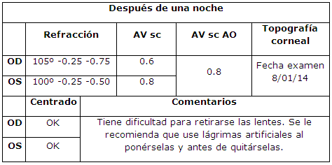 - Las lentes se centran muy bien y la AV del paciente fue buena subjetivamente durante las 48 horas posteriores.