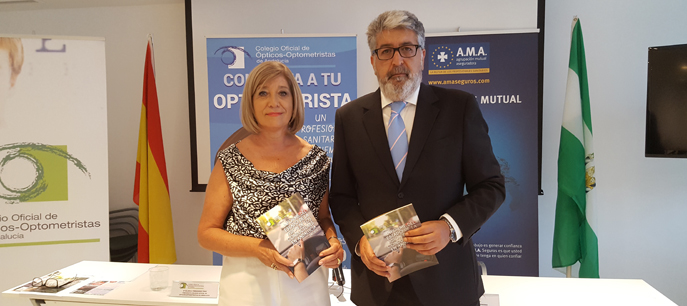 La presidenta del Colegio Oficial de Ópticos-Optometristas de Andalucía, Blanca Fernández, y el delegado de la oficina de Sevilla de AMA Seguros, José Luis Sánchez, presentaron el pasado mes de julio el “Informe del Estado de la Visión de los Conductores en Andalucía”. Un estudio realizado por el COOOA con la colaboración de los colegiados sobre más de 2.000 pacientes, con el objetivo de conocer la agudeza visual de los andaluces con licencia de conducción en vigor.