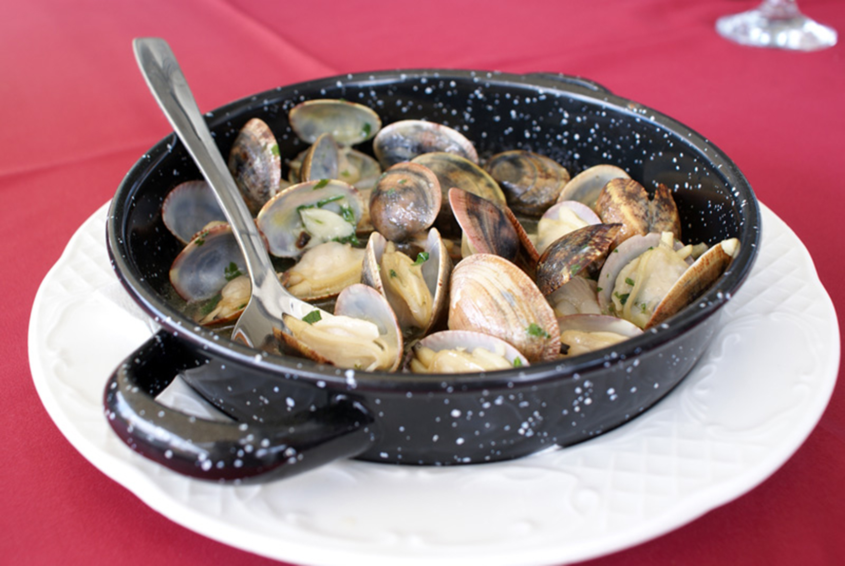 Además de la gran oferta en mariscos, carnes y pescados, Las Dunas posee una gran variedad de ensaladas, postres y su plato estrella: arroz caldoso marinero, sin obviar el arroz con bogavante, con langosta o el arroz negro con marisco.