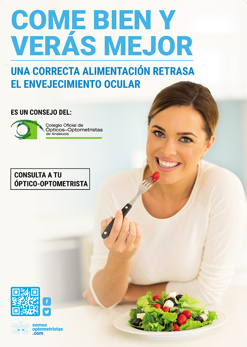 La Comisión de Comunicación del Colegio Oficial de Ópticos-Optometristas de Andalucía (COOOA) puso en marcha el pasado mes de noviembre una nueva campaña institucional a través de su plataforma digital ‘Somos optometristas’, con el objetivo de concienciar a la población sobre la importancia de llevar una alimentación sana y equilibrada para prevenir el envejecimiento ocular. Con el eslogan ‘Come bien y verás mejor’, pretende hacer ver a los ciudadanos andaluces que todo aquello que comen, además de en su organismo, también tiene consecuencias en sus ojos y en su visión.