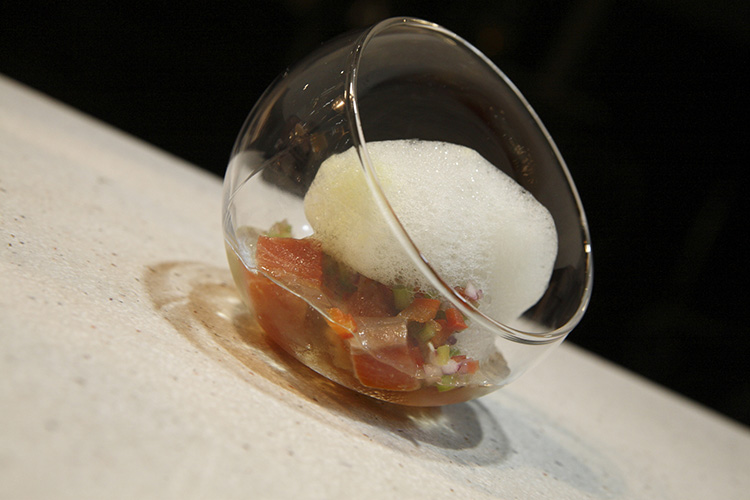 Los Sentidos 3 Publicado 23 marzo, 2017 en 750 × 500 en Placeres de nuestra tierra: Restaurante Los Sentidos (Linares, Jaén) ← Anterior Siguiente → Vasito de pipirrana de trucha de Cazorla con aire de pepino