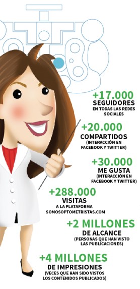 Los contenidos publicados por la plataforma ‘Somos optometristas’ durante 2016 han logrado un gran éxito de difusión, obteniendo más de 2 millones de alcance y 4 millones de impresiones en YouTube, Twitter y Facebook, redes sociales donde se lanzan los mensajes de cada campaña social de prevención en el ámbito de la salud visual.