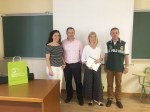 - Marta Fortis, Javier Sebastián y Blanca Fernández, vocales-delegados en Granada y Almería y presidenta del COOOA, respectivamente, junto a junto a Raimundo Jiménez, profesor del Grado en Granada