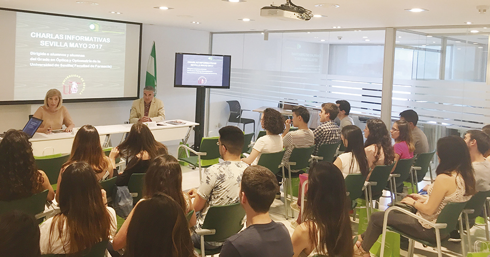 Sevilla Publicado 29 junio, 2017 en 1000 × 525 en El COOOA asesora a los alumnos del Grado en Óptica y Optometría de las universidades de Sevilla y Granada ← Anterior Siguiente → Blanca Fernández y Esteban Moreno, presidenta del COOOA y vocal-delegado provincial en Sevilla, respectivamente, con los alumnos de último año del Grado en Óptica y Optometría de la Universidad de Sevilla.