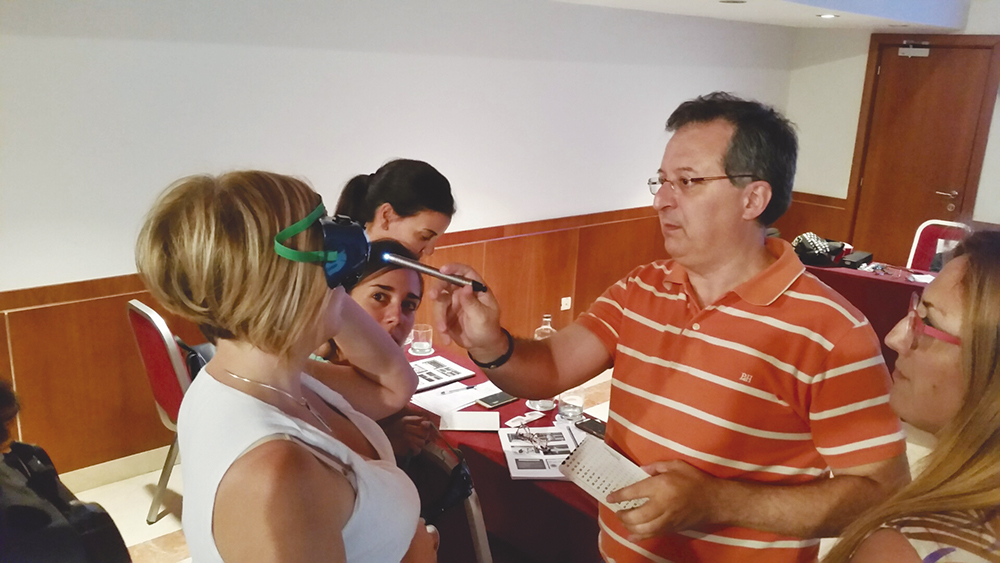 Málaga, 3 y 4 de junio. Novedoso curso enfocado a la población geriátrica impartido por el experto Andrés Gené y muy demandado entre el colectivo óptico-optometrista andaluz, donde una veintena de alumnos adquirieron una serie de conocimientos relacionados con el examen visual en la población en edad avanzada, un sector de la sociedad que cada vez cuenta con un mayor número de miembros a causa del aumento de la esperanza de vida y que cada vez está gozando de mayor importancia en los gabinetes de optometría.