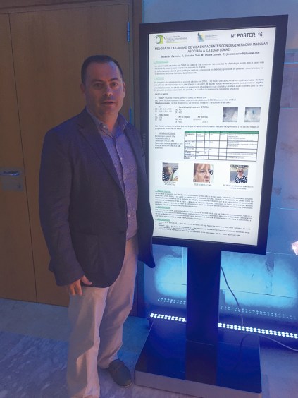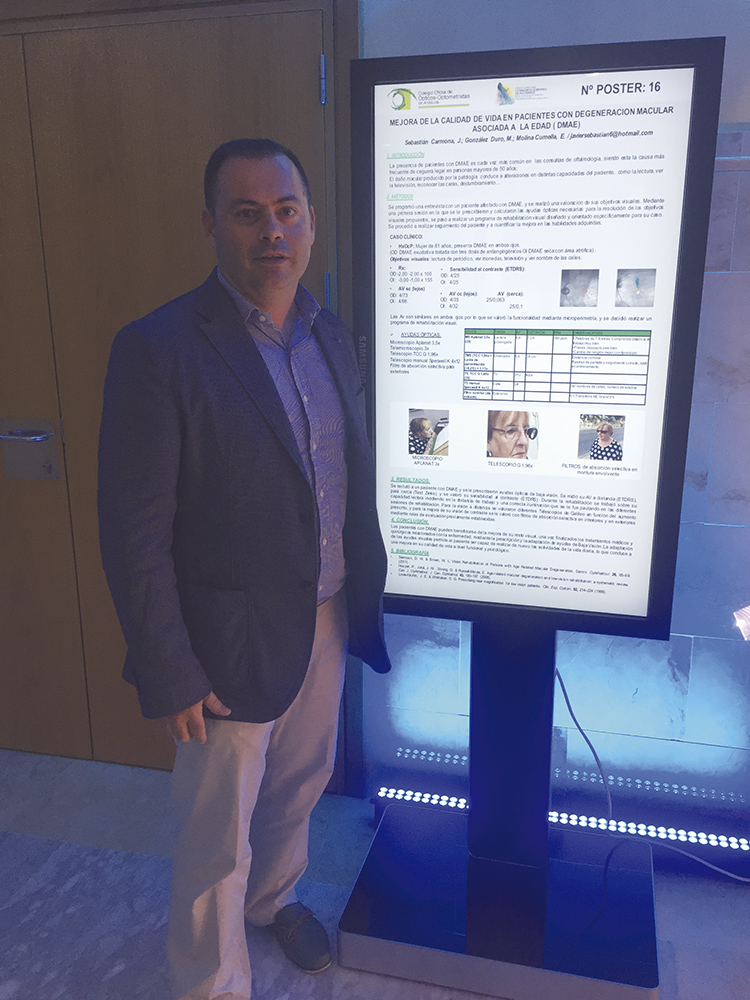 El fin de semana del 21 y 22 de octubre, la Asociación Mácula Retina organizó en Sevilla el I Congreso Europeo de Pacientes afectados por problemas en la mácula y la retina, con una asistencia de más de 500 participantes. El Colegio Oficial de Ópticos-Optometristas de Andalucía estuvo presente en esta cita a través de Blanca Fernández y Carmen García, presidenta y secretaria respectivamente, además de Javier Sebastián, vocal-delegado en Almería, que presentó un póster científico en el que abordó la mejora de la calidad de vida en pacientes con Degeneración Macular Asociada a la Edad (DMAE).
