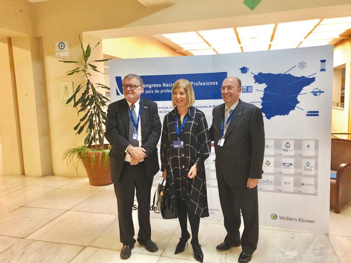 El pasado 18 de enero, el COOOA estuvo presente a través de su presidenta, Blanca Fernández, en el I Congreso Nacional de las Profesiones, organizado por Unión Profesional (UP) y celebrado en la Facultad de Medicina de la Universidad Complutense de Madrid. A través de este simposio se profundizó, entre otros temas, las garantías que la buena práctica profesional puede proporcionar a los ciudadanos, empresas y entidades dentro de una sociedad abierta. En la imagen, Blanca Fernández junto a Jordi Ludevid, presidente de UP (izquierda); y Juan Carlos Martínez-Moral, presidente del CGCOO (derecha).