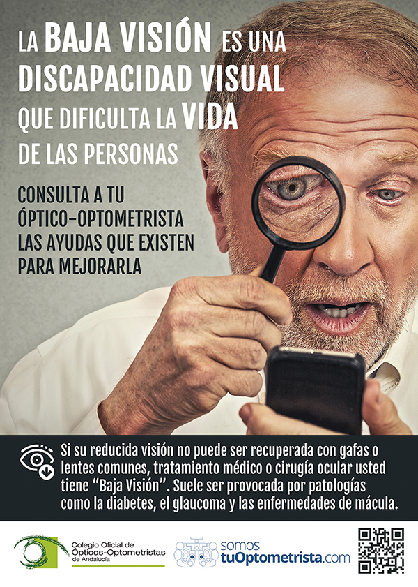 A mediados del mes de noviembre, el COOOA lanzó su nueva campaña social divulgativa en la que da a conocer a la población andaluza la ‘BAJA VISIÓN’, discapacidad visual que afecta a alrededor de 160.000 personas en toda Andalucía. A través de esta iniciativa, que ha tenido impactos en medios de comunicación como prensa tradicional, digital, radio y televisión, se pretende poner en valor al óptico-optometrista como figura profesional especialista al que una persona deberá acudir cuando observe síntomas relacionados.