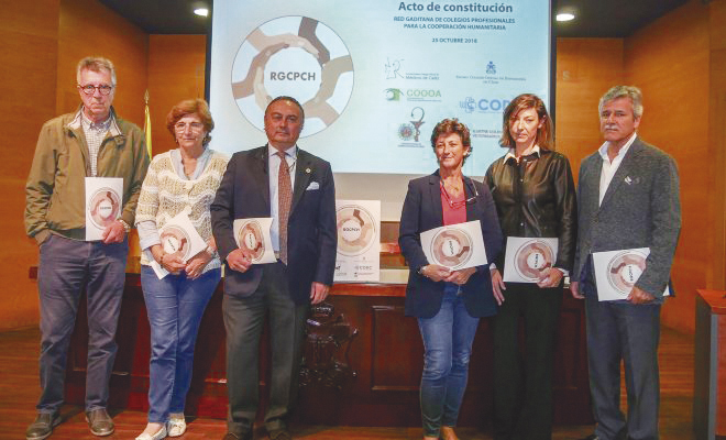 La sede del Colegio de Médicos de Cádiz acogió el pasado mes de octubre la presentación de la Red Gaditana de Colegios Profesionales para la Cooperación Humanitaria (RGCPCH), en la que participa el COOOA junto a otros colegios profesionales provinciales y regionales.
