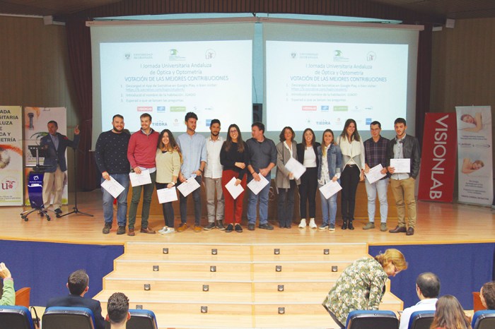 En el evento, pionero en Andalucía, y donde participaron el secretario de la Facultad de Ciencias de Granada, José Antonio Herrera; María Álvarez de Sotomayor, decana de la Facultad de Farmacia de la US; Blanca Fernández, presidenta del COOOA; y Rafael Huertas, coordinador del Grado en Óptica y Optometría de la UGR; alumnos de último curso del Grado universitario expusieron sus Trabajos de Fin de Grado en forma de presentaciones, comunicaciones orales y pósteres informativos. En ellos, abordaron temas relacionados con las lentes de contacto cosméticas terapéuticas o con sensores integrados, sistemas de gelificación, diagnóstico de esclerosis múltiple a través de OCT, diagnóstico precoz y tratamiento de varias patologías visuales o técnicas para el control de la progresión de la miopía.