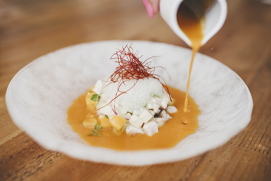 Buena cuenta de ello la dan sus Canelones de rabo de toro, la Corvina con gazpacho de zanahoria escabechada, la Mazamorra de almendra, sardina ahumada y manzana o la espectacular Tarta de manzana Regadera con chocolate blanco y vainilla, Granny Smith y galleta de mantequilla tostada.
