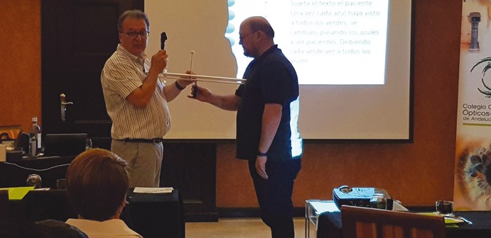 Granada, 19 y 20 de octubre. Una veintena de colegiados ópticos-optometristas andaluces participaron en estas jornadas formativas organizadas por el COOOA en la capital granadina, con gran valoración de los asistentes debido al nivel de los conocimientos adquiridos. A través de este curso, el experto optometrista y docente Andrés Gené ofreció una serie de consejos y recomendaciones para realizar un examen visual de manera satisfactoria, abordando los procedimientos y técnicas que deben seguirse paso a paso para ello, con el objetivo de detectar en el paciente posibles defectos en la visión.