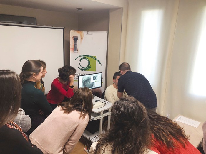 Huelva, 23 y 24 de noviembre. Las óptico-optometristas y docentes Almudena Valenzuela y Marta Fortis, esta última vocal-delegada del COOOA en Granada, impartieron el último fin de semana de noviembre unas jornadas de formación teórico-prácticas donde abordaron una serie de temáticas relacionadas con la Topografía corneal. Durante el curso proporcionaron los conocimientos básicos y la técnica necesaria para utilizar el topógrafo corneal e interpretar los mapas topográficos que proporciona dicho instrumento, obteniendo la capacidad de detectar determinadas alteraciones y patologías corneales.