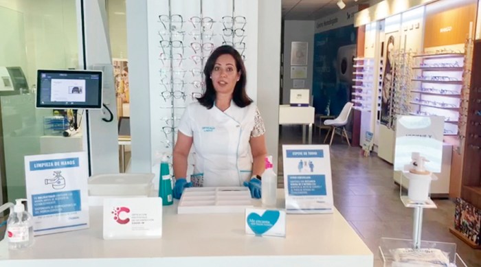 Carmen María Labao, óptico-optometrista malagueña, fue la representante del COOOA en esta campaña, donde incidió en el cumplimiento de los protocolos por parte de los establecimientos y aportó recomendaciones específicas para usuarios de gafas y lentes de contacto y la población en general.