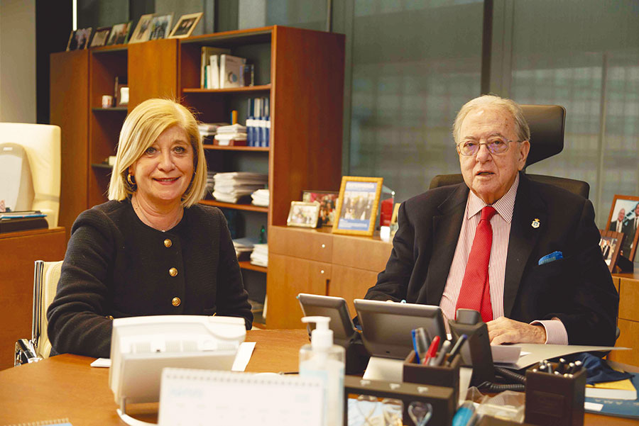Blanca Fernández, decana-presidenta del COOOA, y Diego Murillo, presidente de la Fundación A.M.A. y A.M.A. Vida, fueron los encargados de firmar el acuerdo en febrero, en un acto en el que también se renovó la póliza de vida que el COOOA tiene suscrita con la entidad aseguradora, con una ampliación del capital en caso de fallecimiento de los colegiados asegurados.