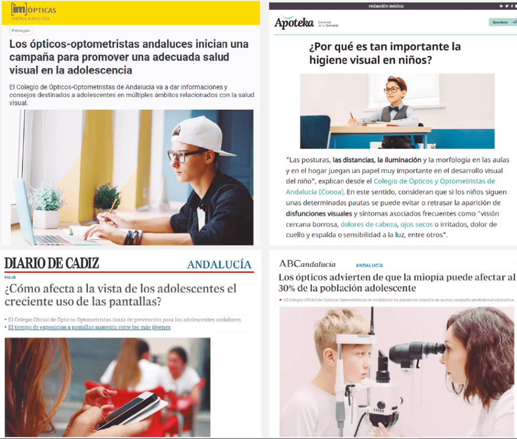 El Colegio Oficial de Ópticos-Optometristas de Andalucía (COOOA) puso en marcha a mediados de mayo su nueva campaña profesional educativa y de concienciación que, en esta ocasión, está dirigida a los adolescentes andaluces, una etapa muy importante en el desarrollo visual.