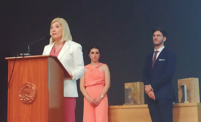 En el acto, la decana-presidenta entregó un reconocimiento a los dos alumnos que han contado con el mejor expediente académico de las dos promociones, Paula Ramudo en el Doble Grado de Farmacia y Óptica y Optometría, y Antonio Flores en el Grado de Óptica y Optometría. Además del diploma y estatuílla conmemorativas, se beneficiarán durante un año de los cursos de formación continuada del COOOA de manera gratuita.