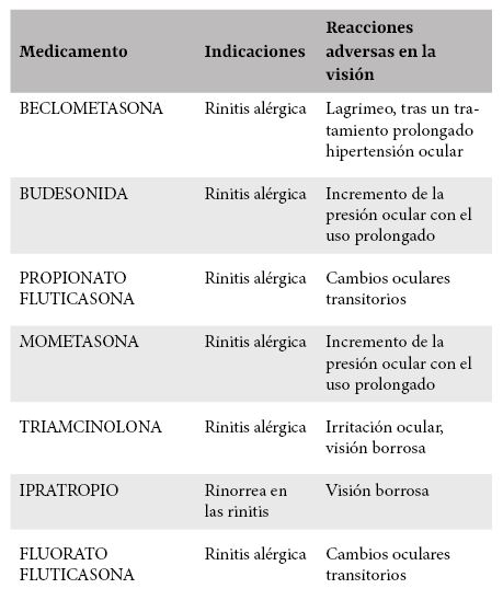 Observa cuáles son las principales reacciones adversas sobre la visión de aquellos fármacos utilizados para tratar el descongestionamiento nasal.