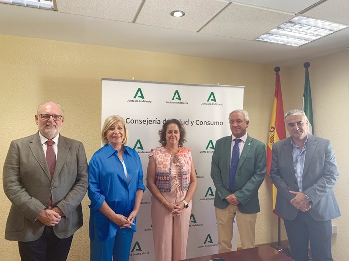 Acudieron también a la reunión Miguel Ángel Guzmán, viceconsejero; Diego Vargas, director gerente del Sistema Andaluz de Salud; y Esteban Moreno, vicesecretario del COOOA.